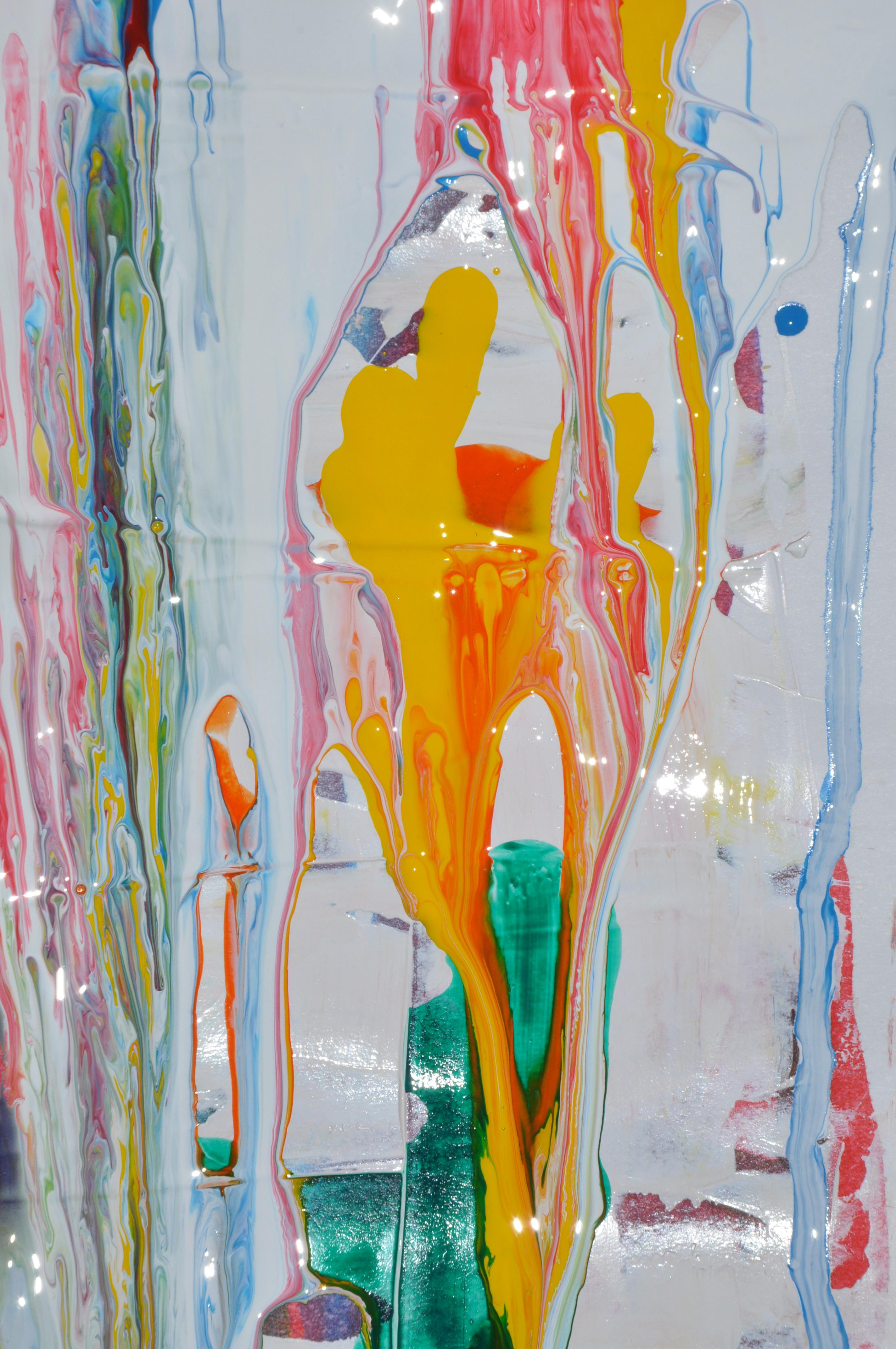 Acrylic color has a special feature that can clearly shows the flow of mixing colors. I tried to minimize the colors into the simplest two:blue and yellow. The color reflects the strongest contrast but blended in harmony, just like the speaker and the student in symposium, they can exchange their thought and communicate with each other. Both two make the symposium with great influence.