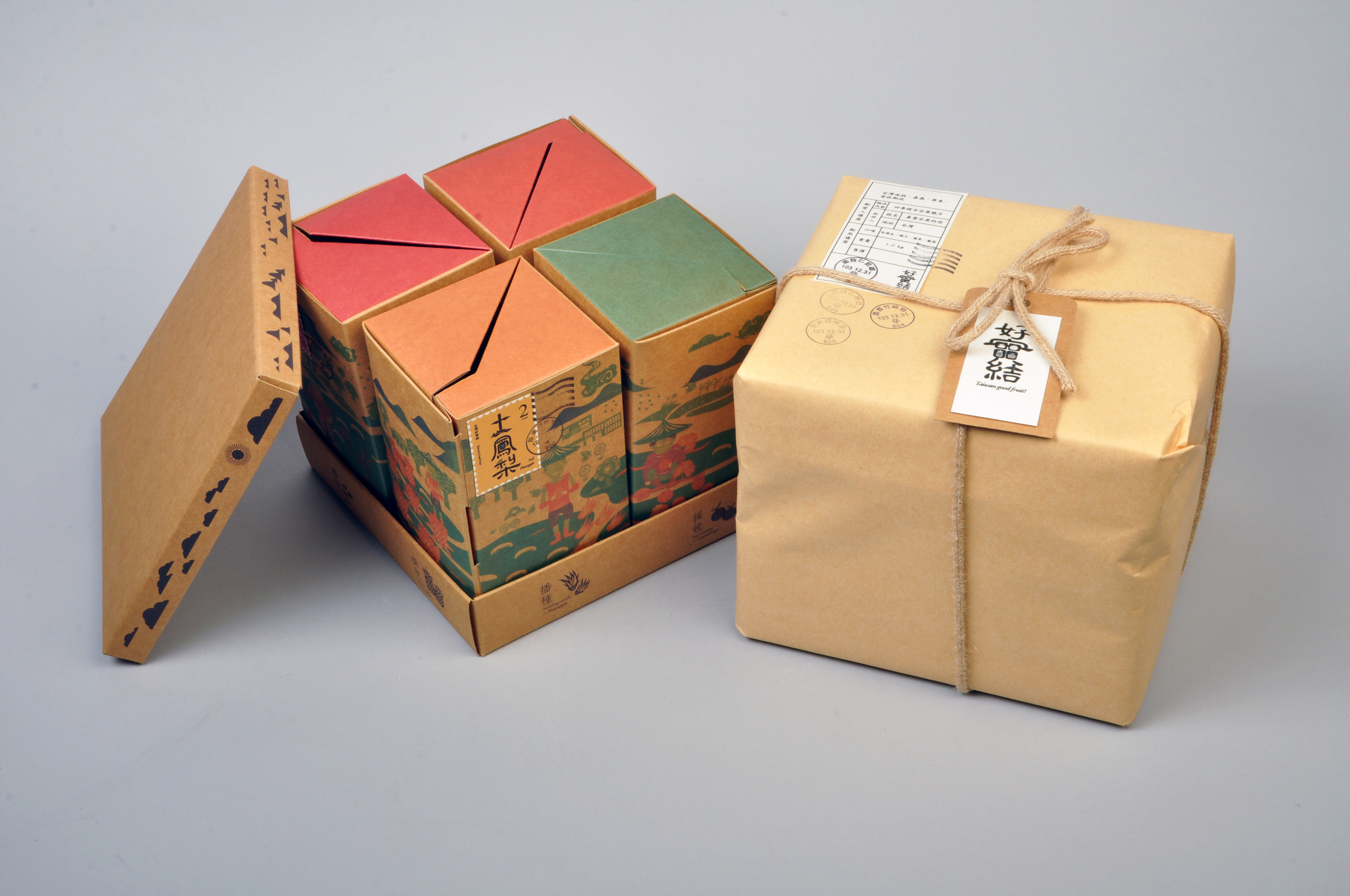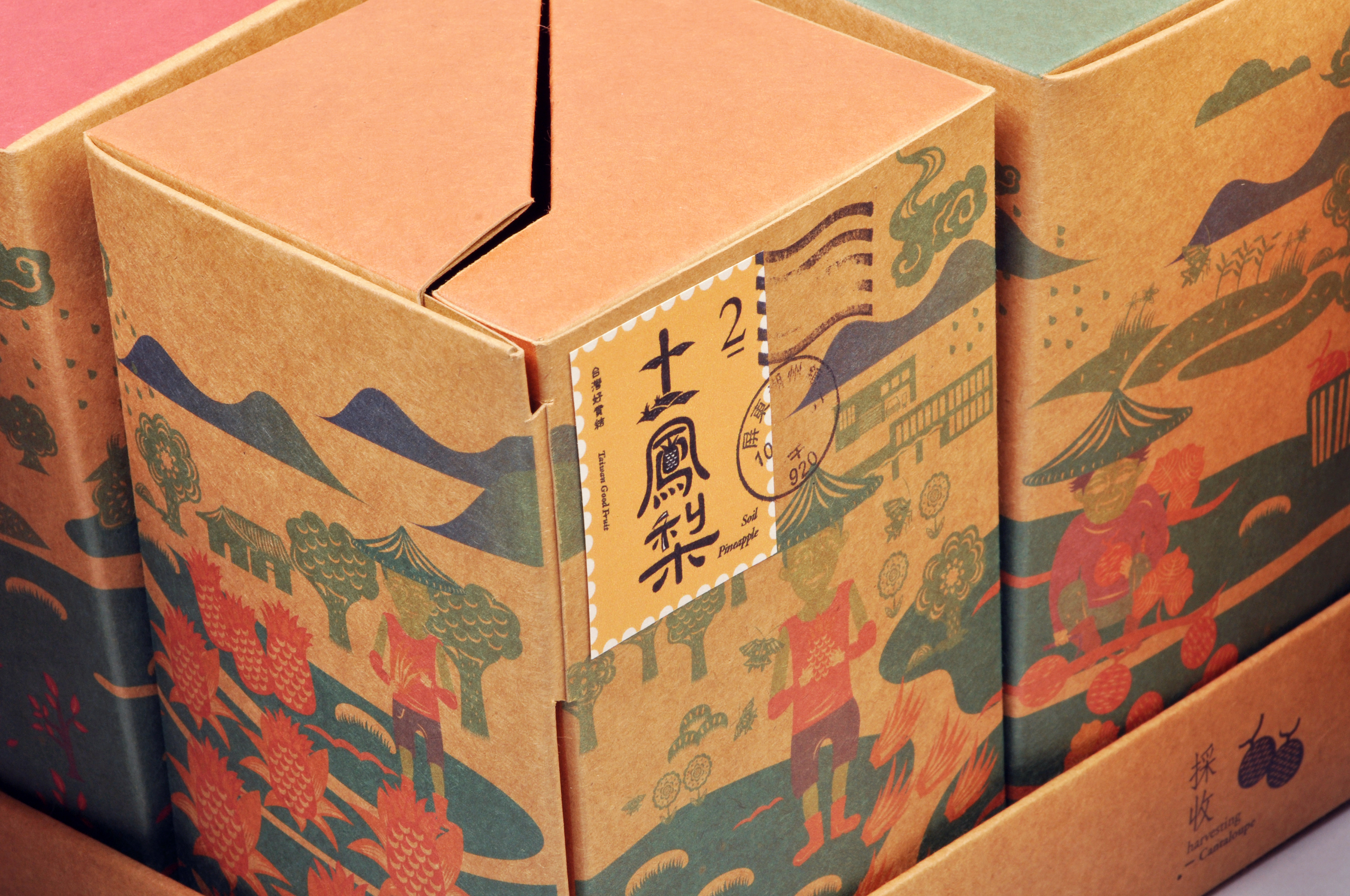 Each side of the package is the seasonal transition of the fruit produced time: spring: cantaloupe, summer: pineapple, autumn: apple, winter: tangerine. If you put these four packages into the box you will see the fruit's processions of seeding to harvest it means there are always good fruits to eat in any time in Taiwan. Furthermore inside the packages there are letters contained which talks about the growing environment behind the fruit, the information also explain the growing process of the fruit.